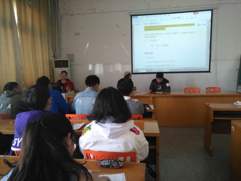 会上,组宣部部长石一彪反馈了各班级团日活动策划的材料提交情况,他通过具体案例,指出活动策划的错误与不足,并提出具体要求。他强调,团日活动形式要具体、主题要突出,活动内容要去娱化。随后,各班团支书提出问题与困惑,大家集思广益,讨论交流,并一一进行解答。大家一致认为,团日活动要有认识,有深度、有创新,不能应付了事。