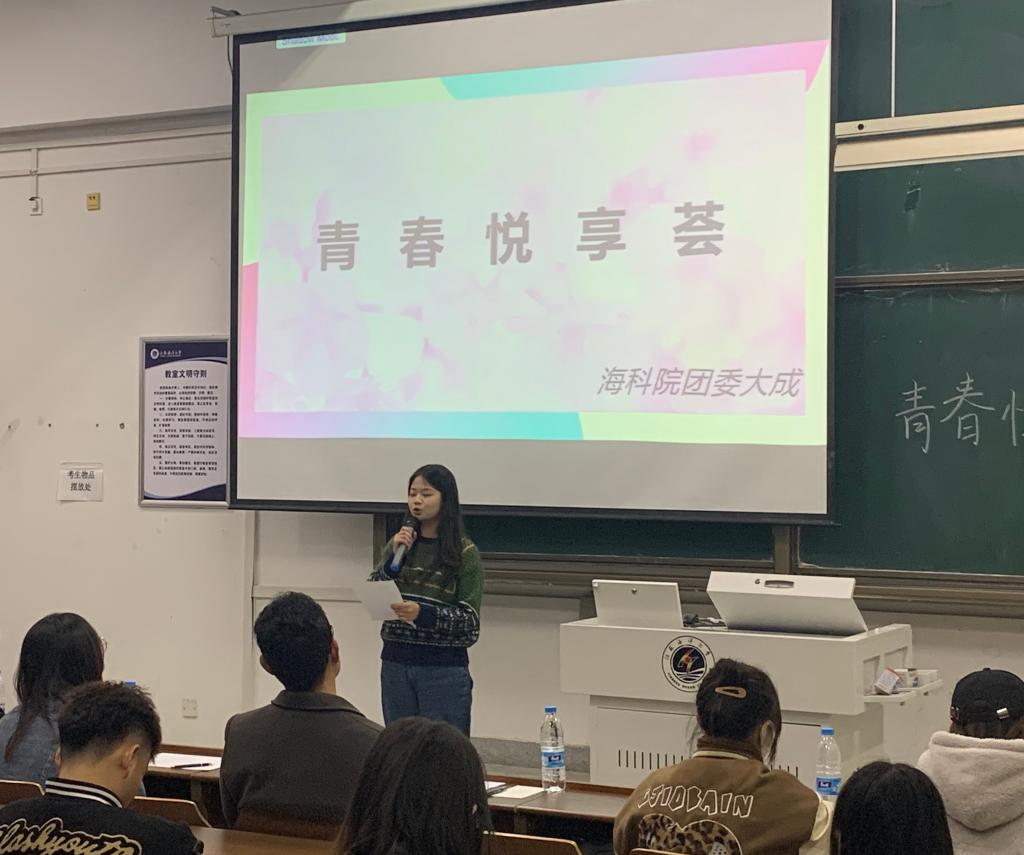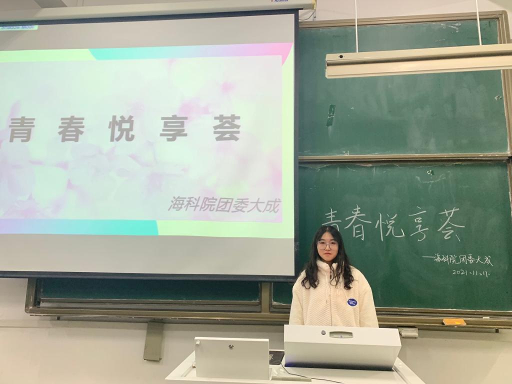 11月11日晚于文通楼304室举办“青春悦享荟”活动,学院团委副书记唐振新、学生团委副书记罗兰欣宇、大成主任兼学生团委副书记李沁芯、校团委大成文化育人部部长颜炜杰、校团委大成PU部部长陈实出席活动并担任评委。共计20名同学通过本次活动展示自己的青春风采,活动由综合育人部姚欣雨主持。