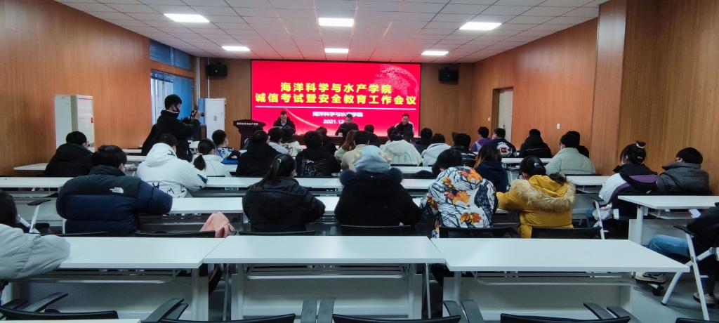 在海洋南楼201会议室召开诚信与安全教育学生工作会议。会议由院党委副书记张根友主持,院团委副书记唐振新、辅导员韩振以及各班班长和团支书参加了会议。
