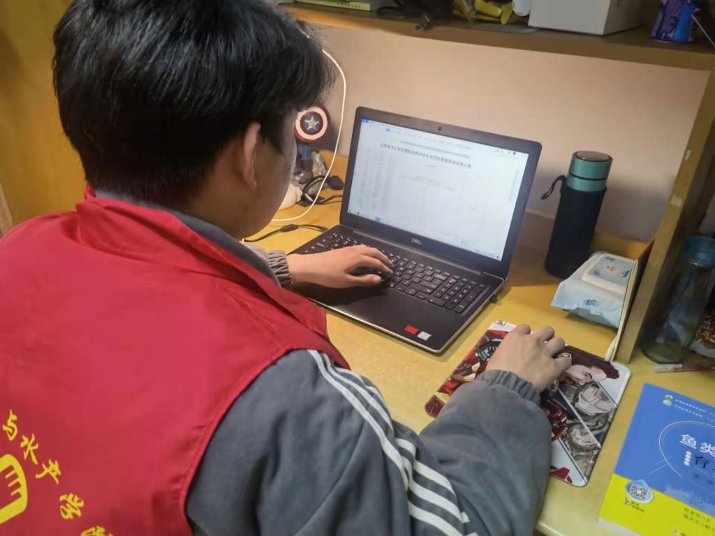 由于原定外出实习,养殖专业的学生前六周的课程压力很大,除了晚上基本上都是满课。在繁重的课程下,张瑜虽然不能穿上白色防护服帮助医护人员进行核酸检测、穿上红色志愿服帮助维持队伍秩序,但他可以利用晚上休息时间,帮助辅导员统计每日核酸人数、调控第二天志愿者的工作安排。“虽然我不能奋战在抗疫第一线,但我可以在后面为大家解决其他协调保障问题。”