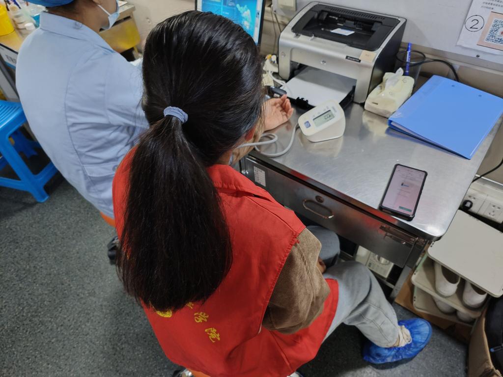 活动过程中,志愿者们佩戴口罩及医用头套在儿科室、妇科产科室、放射科室、保健科室等科室外帮助病人挂号缴费,在体检中心辅助就诊人员用测量仪测量身高体重血压等各项健康指标,在医院门诊大厅对进入医院人员测量体温、查验健康码及行程码等信息,回答就诊人员关于挂号缴费、科室分布及行进路线等方面问题咨询。
