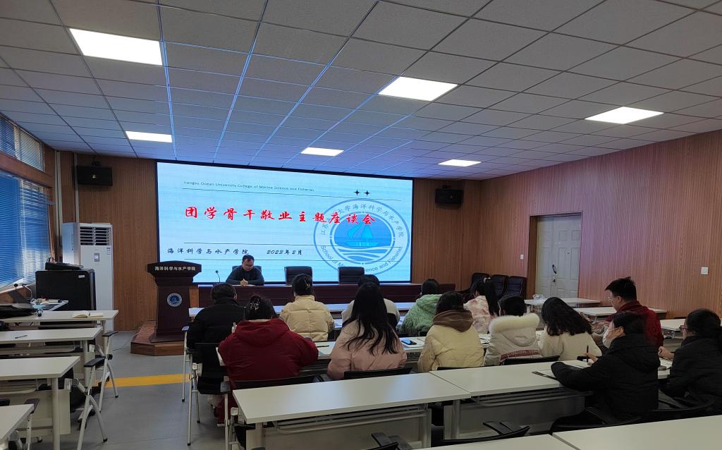 于海洋南楼203召开团学骨干敬业主题座谈会。学院党委副书记朱小明,团委书记唐振新及全体团学骨干参与座谈。