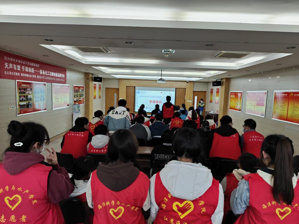 十位志愿者前往连云港市第二人民医院参与“无声有爱,手语助医”医务社工志愿技能拓展活动。此次活动由连云港市民政局、新东街道社会工作站、连云港市第二人民医院医务社工站等单位联合举办。
