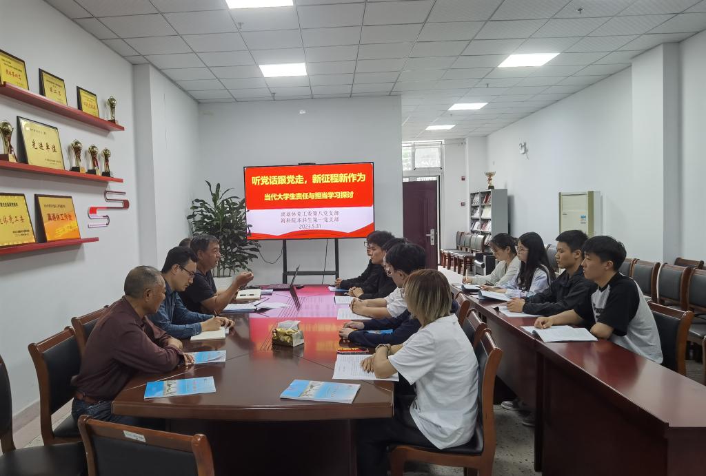 本科生第一党支部联合离退休党工委第八党支部开展“听党话跟党走·新征程新作为”——当代大学生责任与担当学习研讨会,离退休党工委副书记王祥义、第八党支部书记田克林,羞羞漫画