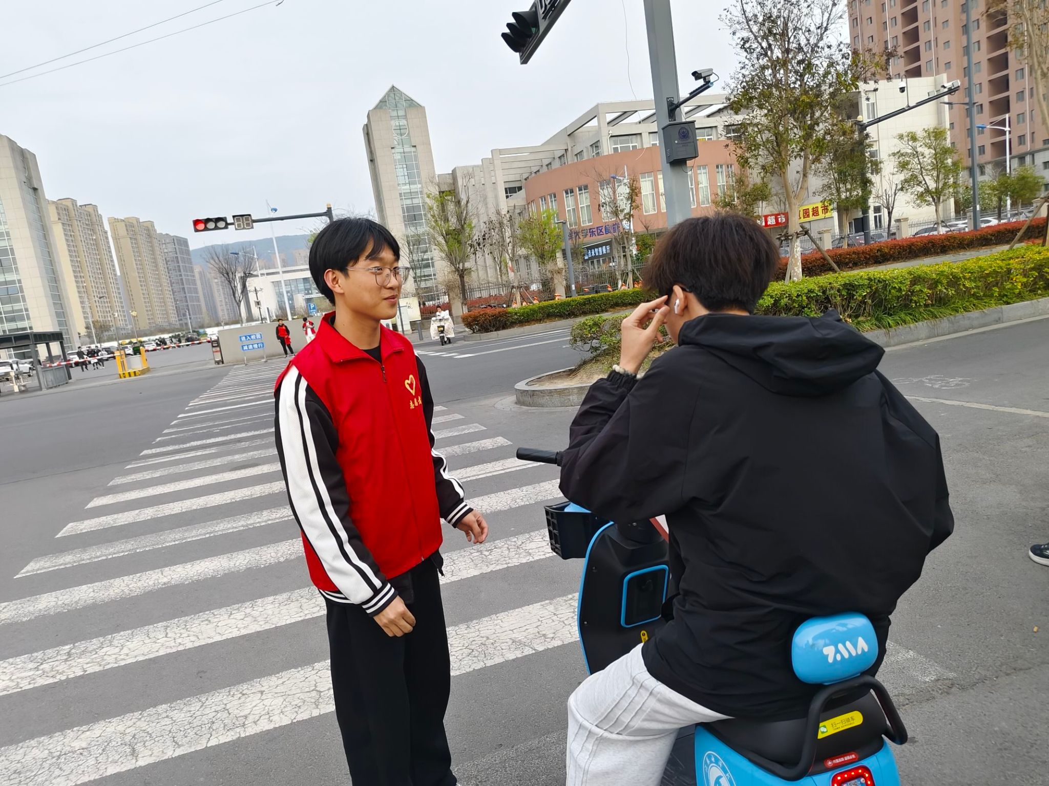 学生志愿者近日组织了一场交通安全劝导教育行动,用实际行动诠释着“奉献、友爱、互助、进步”的志愿服务精神。