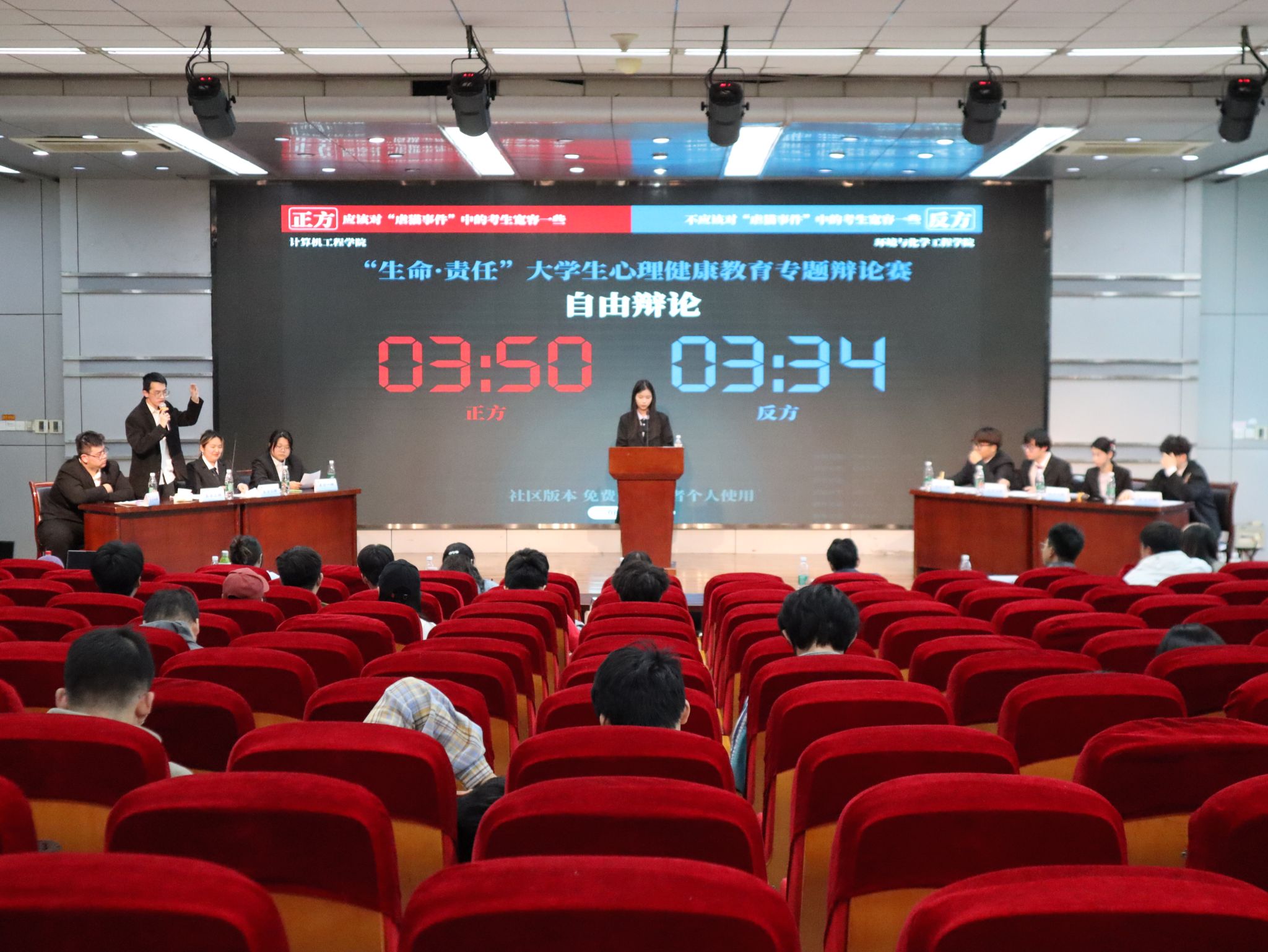 承办的“生命·责任大学生心理健康教育专题辩论赛”决赛在艺术楼报告厅圆满结束。经过激烈角逐,最终四个学院进入决赛:羞羞漫画