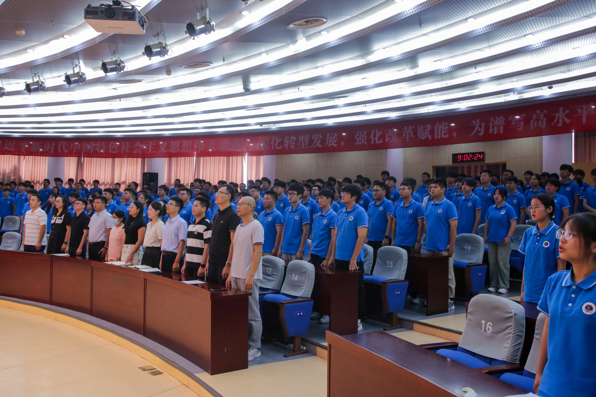 院长徐军田出席典礼,学院领导黄金虎、朱小明、高焕、冯志华、吴亚平以及各系、科室负责人、新生班主任和2024级全体新生参加开学典礼活动。