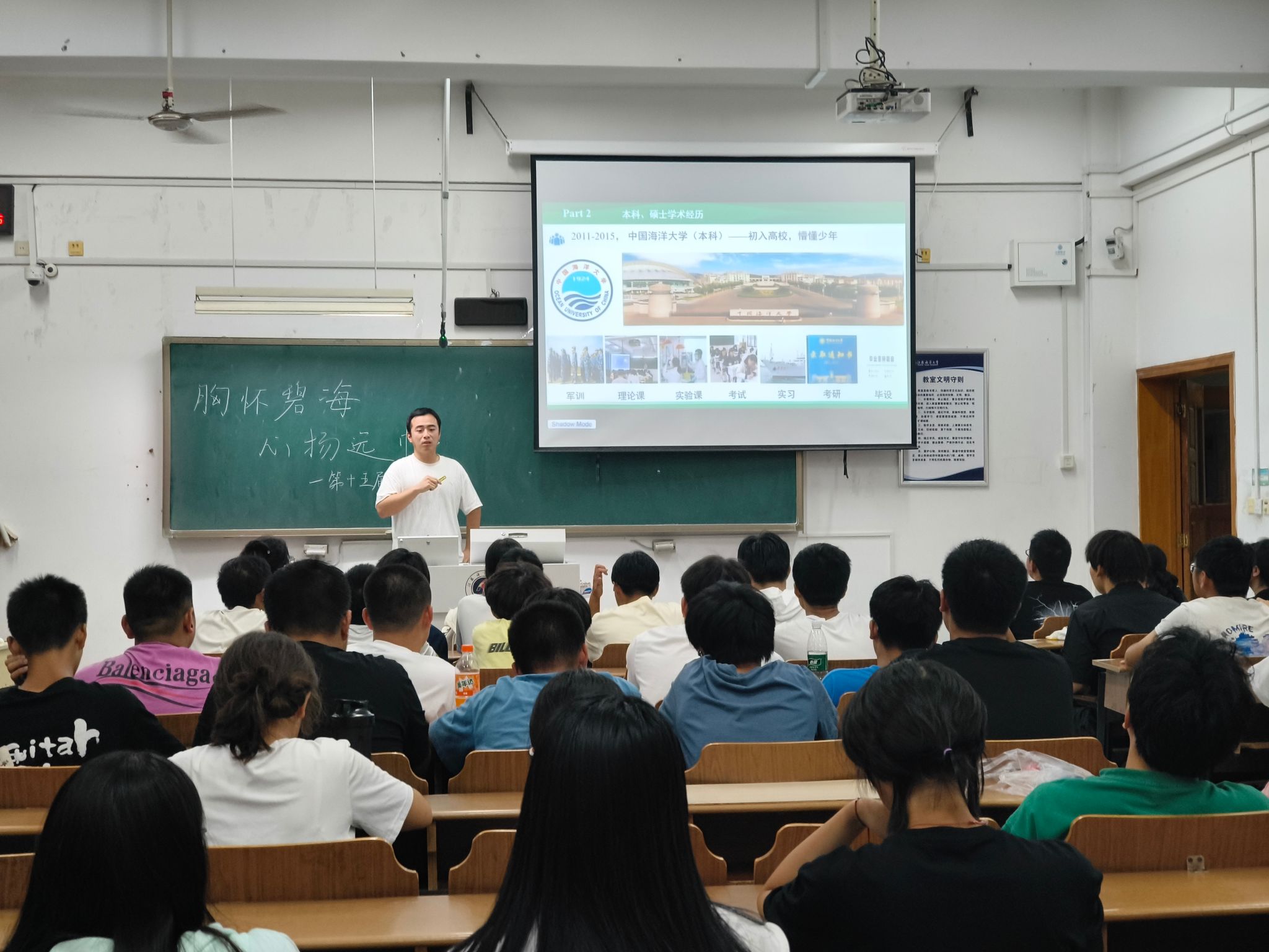 活动伊始,周怡怡向参会同学介绍了出席活动的主讲嘉宾,并阐述了本次活动的简要流程。谢磊就海洋科学学科的起源、发展历程、背景意义等进行了阐述,同时结合自身丰富的科研经历给同学们带来精彩讲解,为同学们讲述了自己从初入大学的懵懂到如今探索出明确发展道路的过程,并分享了这一过程中自身视野与认知的变化情况,重点强调了提升学识的重要性。他鼓励同学们积极进取,不断拓宽视野,争做乘风破浪、勇担使命的新时代优秀青年。