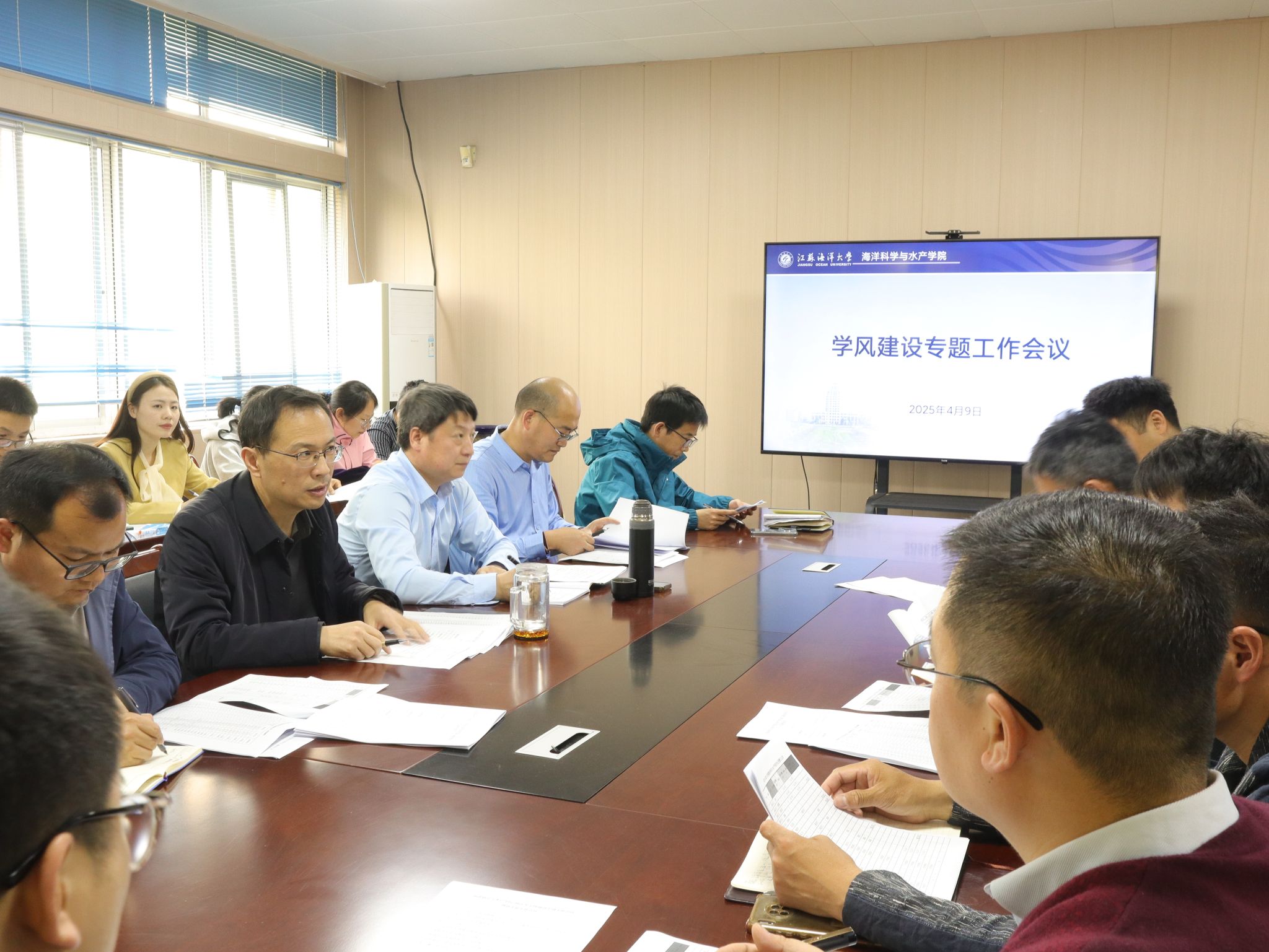 在海洋南楼211会议室召开学风建设专题工作会议,部署2025年学风建设、毕业生就业等重点工作。学院党政领导班子、系主任、教学科研办与学工办相关人员、全体辅导员及班主任参会。院党委书记黄金虎主持会议,并就相关工作提出要求。