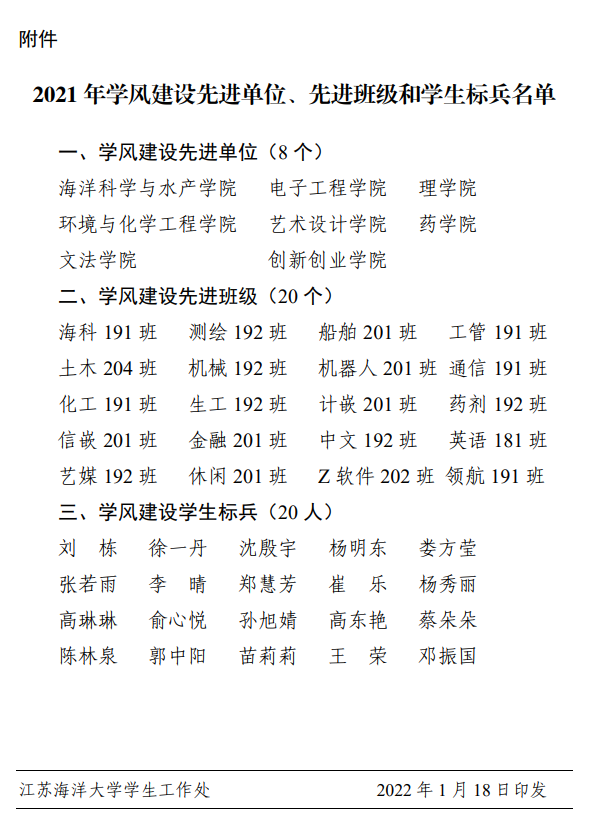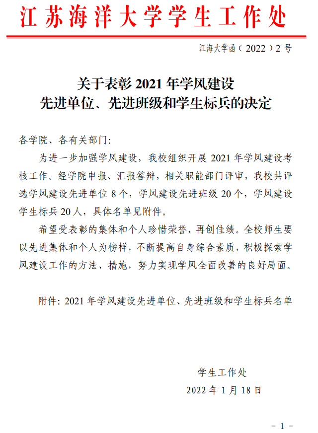 关于表彰2021年学风建设先进单位、先进班级和学生标兵的决定