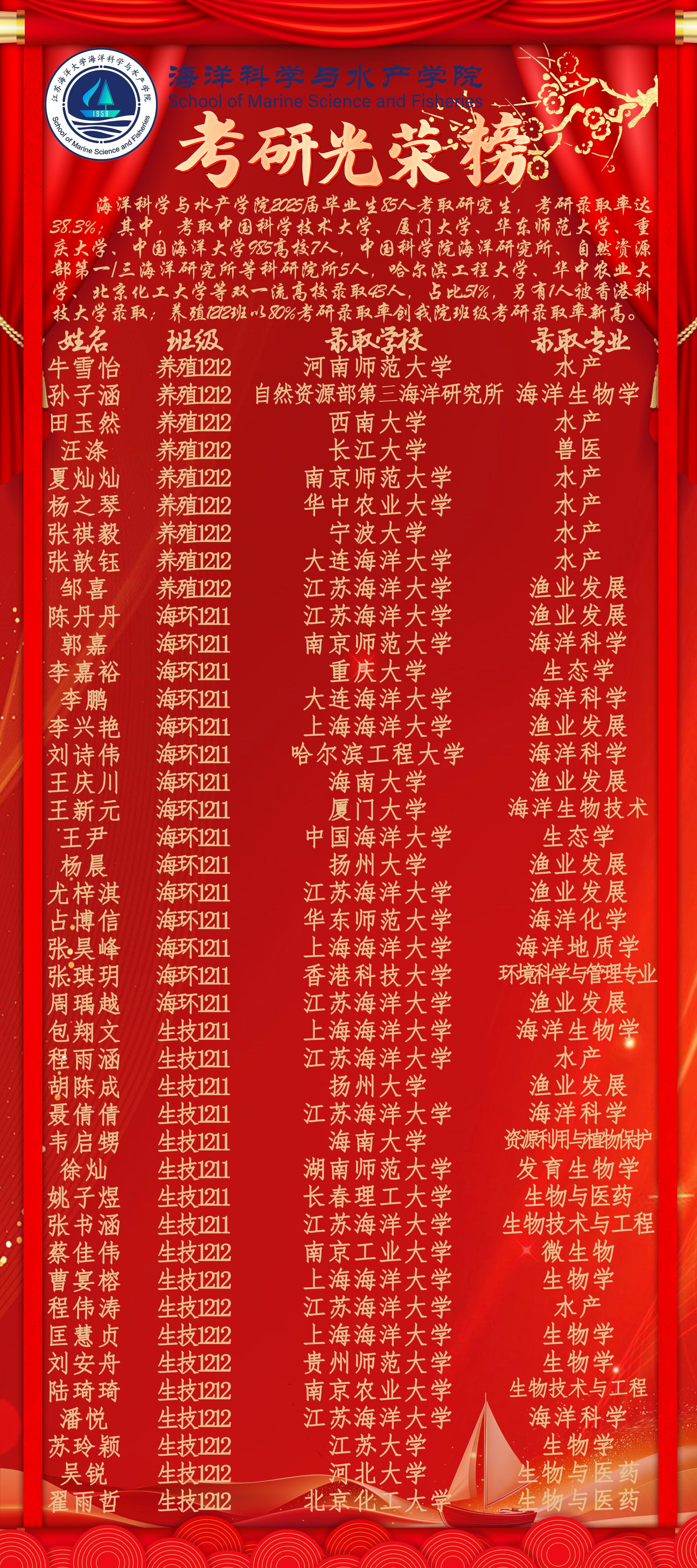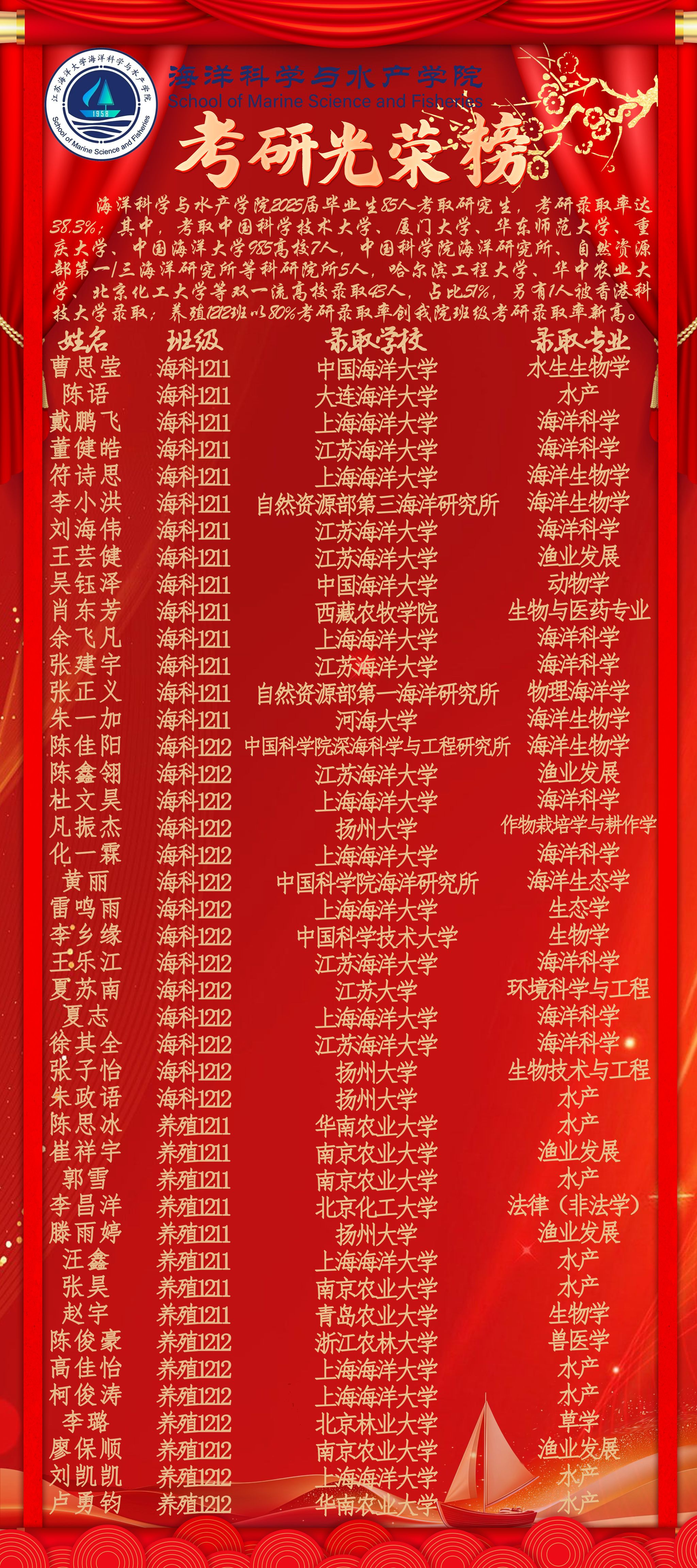 羞羞漫画 2025届毕业生85人考取研究生,考研录取率达38.3%;其中,考取中国科学技术大学、厦门大学、华东师范大学、重庆大学、中国海洋大学985高校7人,中国科学院海洋研究所、自然资源部第一/三海洋研究所等科研院所5人,哈尔滨工程大学、华中农业大学、北京化工大学等双一流高校录取43人,占比51%,另有1人被香港科技大学录取;养殖1212班以80%考研录取率创羞羞漫画 班级考研录取率新高。