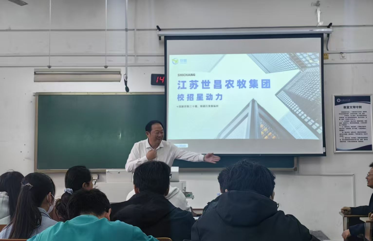 下午举行的专场招聘会上,世昌农牧集团通过企业宣传片全景式展现其“深耕农牧助农兴农”的发展理念。袁珍虎董事长结合企业30年发展经历,鼓励与会同学将专业知识融入乡村振兴实践,做一名有社会责任感的青年大学生。集团技术总监杨中宝重点解读了企业的人才培养体系,针对学生关心的薪资待遇、职业发展通道等问题进行详细说明,强调企业为毕业生提供“技术+管理”双晋升通道。人力资源总监陈士贵通过大数据分析当前就业形势,建议学生既要扎实掌握专业技能,也要增强社会实践能力。