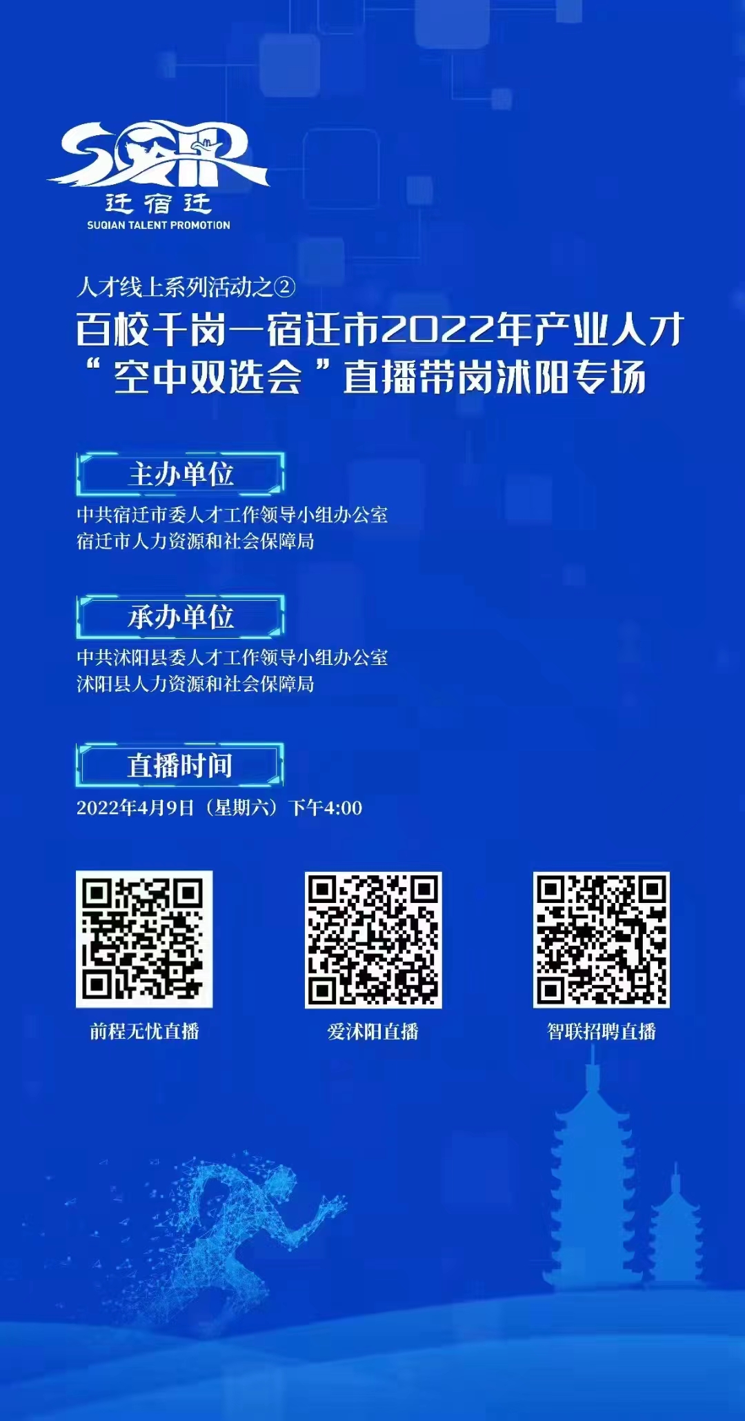 百校千岗——宿迁市2022年产业人才“空中双选会”直播带岗沭阳专场