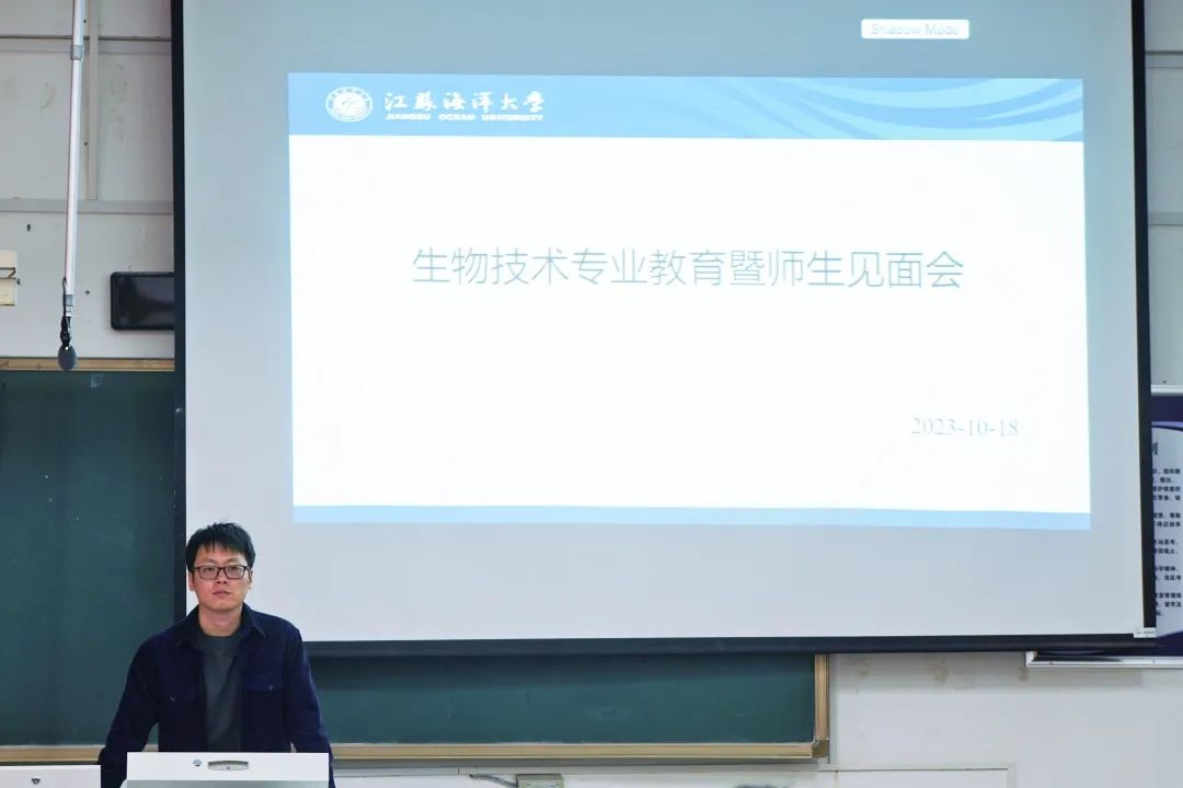 会议伊始,李富田介绍了生物科学与技术系发展历程及光荣历史。教师风采展示让同学们更加了解每位老师的研究方向;历年就业及考研情况介绍让大家更加清楚毕业前景。随后,李富田结合毕业要求和学校学士学位授予细则详细介绍了生物技术专业的培养方案,勉励同学们功夫要下在平时,履践致远。