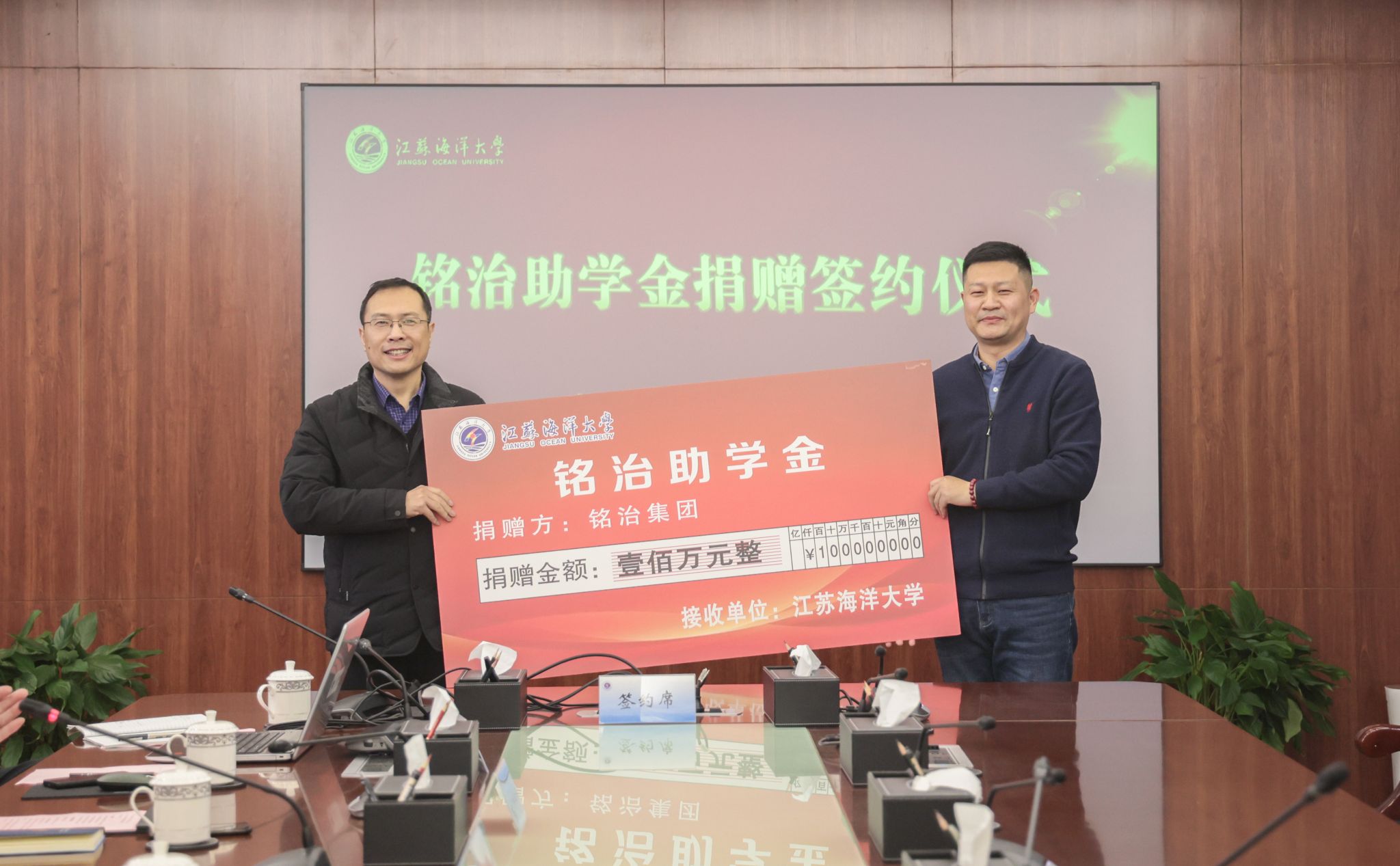 2024年1月,李涛等校友返校捐赠100万元人民币,设立“铭治助学金”,为经济困难学生提供帮助。李涛表示,在母校学习期间,老师无私奉献的精神和无微不至的关怀教育让他坚定了扎根水产行业的决心,也为事业发展打下了坚实的专业基础,希望能为更多学有所志的学弟学妹提供帮助,期待在人才培养、健康养殖及智慧渔业等关键技术攻关方面,与母校加强合作,共同推动海洋渔业产业绿色发展。