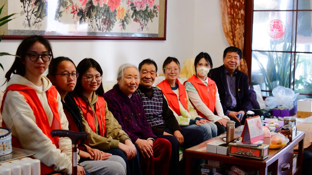 一支部党员志愿者慰问老党员周兆才、宋淑华夫妇,听老党员讲述奉献教育事业的光辉事迹,感受他们的如磐初心,同时开展志愿服务活动,送上关怀与祝福,守护最美“夕阳红”。